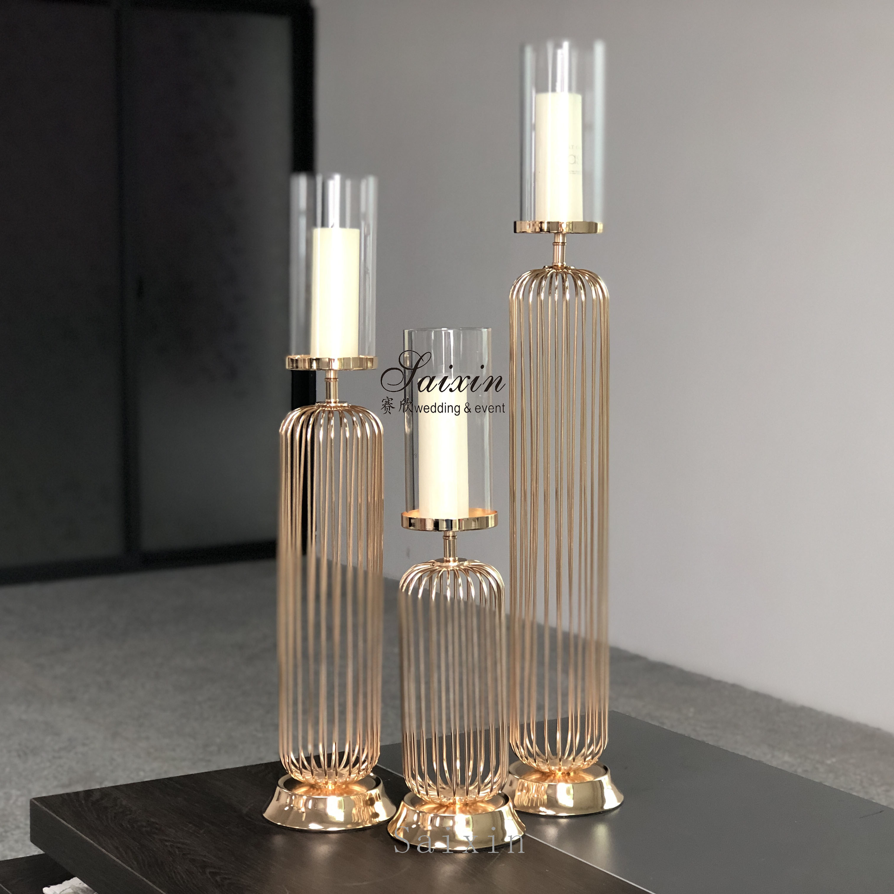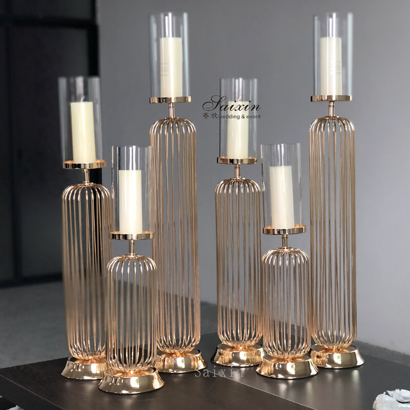 이 세 조각의 세련된 현대의 촛불 세트는 장미 금 금 철선 프레임, 선명한 유리 촛불 색조, 그리고 차등된 높이를 갖추고 있습니다.다양한 환경에서 장식용으로 사용하기에 적합합니다..